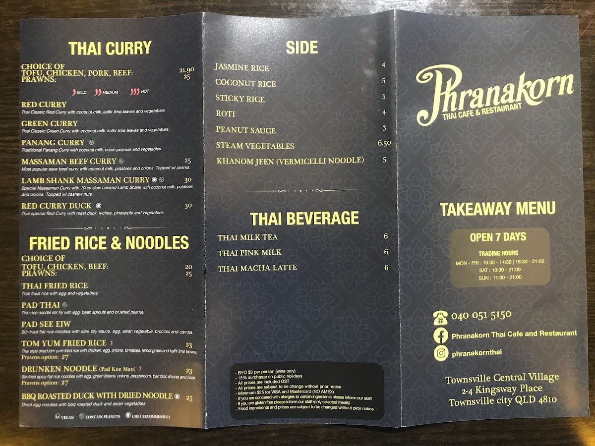 Welcome to Phranakorn Thai Cafe and Restaurant, a culinary gem nestled in the heart of Townsville. This authentic Thai eatery boasts a vibrant menu that showcases the rich flavors of Thailand. Indulge in signature dishes like the Red Curry Duck, featuring juicy roast duck and tropical fruits, or savor the tender Lamb Shank Massaman Curry, a slow-cooked delight that melts in your mouth. For starters, the crispy Pork Belly Basket and Chicken Satay are highly recommended, bursting with unique flavors.